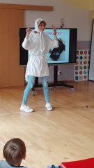 Do naší MŠ přijelo interaktivní knižní divadlo Kočkohrátky s kočičkou Ťapičkou. Celým představením provázela děti i rodiče sama autorka Markéta Harasimová.