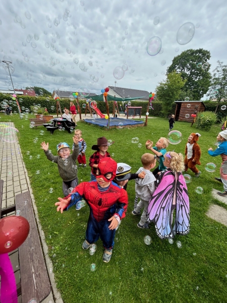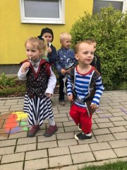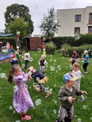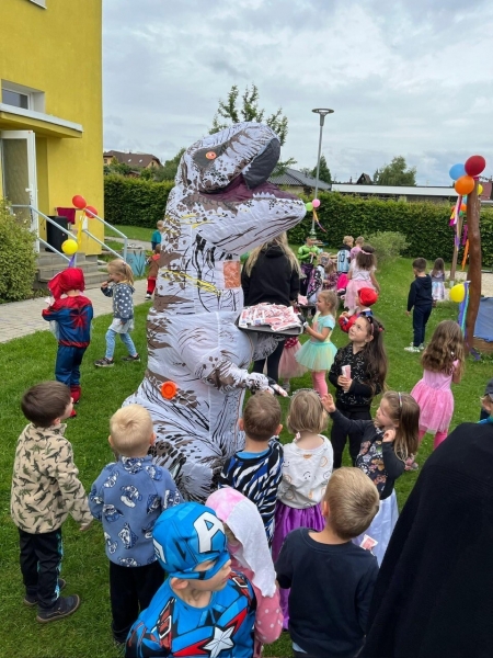 Dětský den si děti užily ve svém oblíbeném převleku na zahradě školky. Navšívili je dva dinosauři a rozdali dětem nanuky. Celé dopoledne probíhalo ve veselé náladě plné tance, disko hudby, bublinek a soutěží.