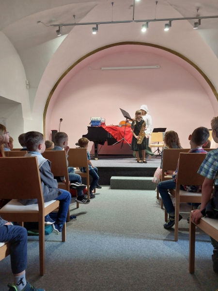 Děti ze tříd Hvězdiček a Soviček byly pozvané na koncertní představení dětí ze ZUŠ Piaristické náměstí.