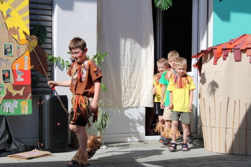 Děti z Hvězdiček připravily vystoupení na téma Pět minut v Africe v rámci loučení s předškoláky.