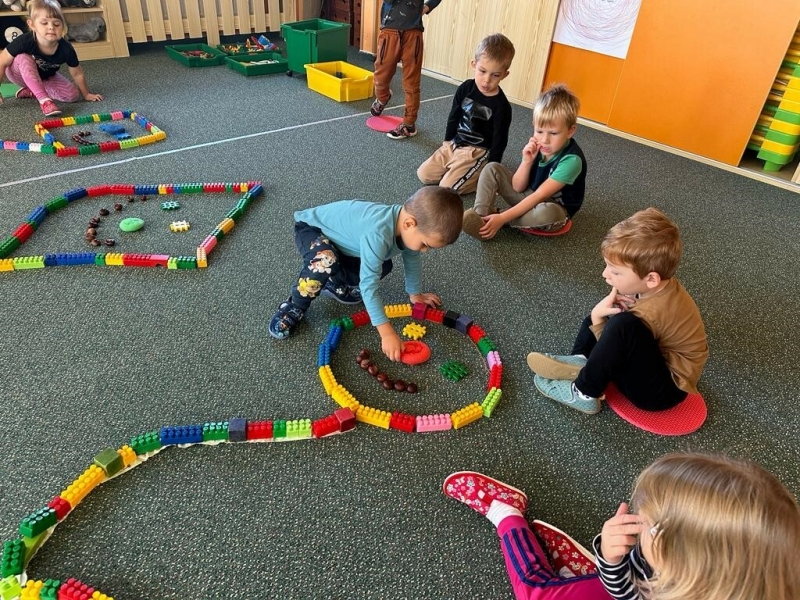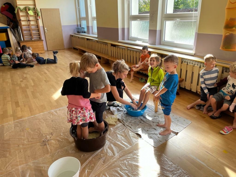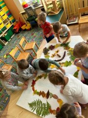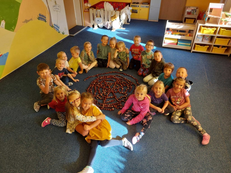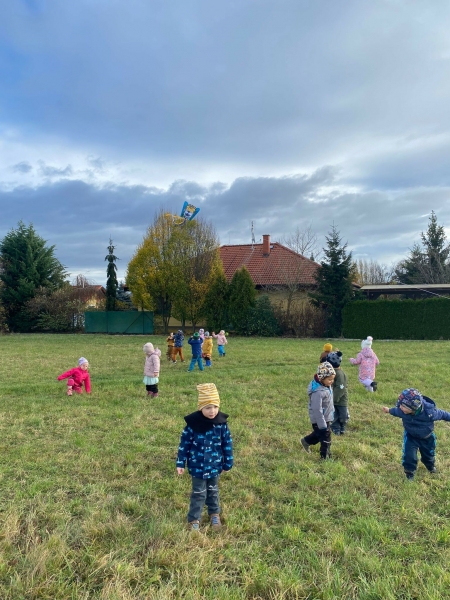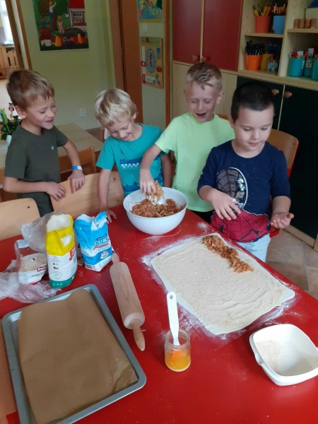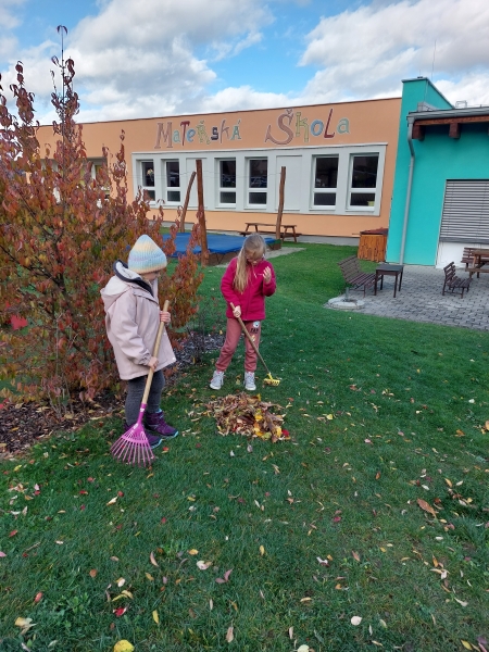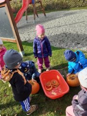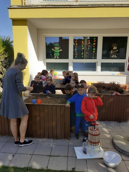 Podzimní čas v naší školce-radovánky s větrem, zazimování zahrady, strašidelné dýně, poklady ze zahrádky, pečení štrúdl, moštování, šlapání zelí a zamykání lesa.
