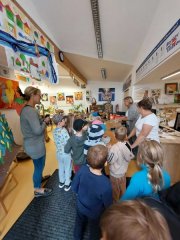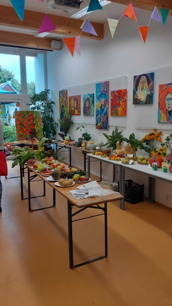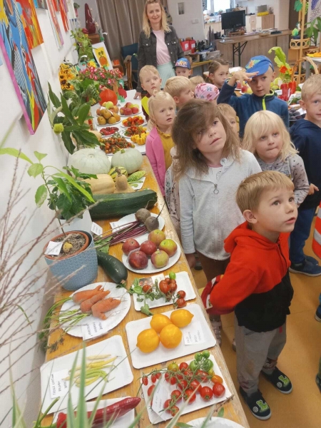 Děti ze tříd Hvězdiček a Soviček se šly podívat na obecní úřad na výstavu ovoce a zeleniny místních zahrádkářů.