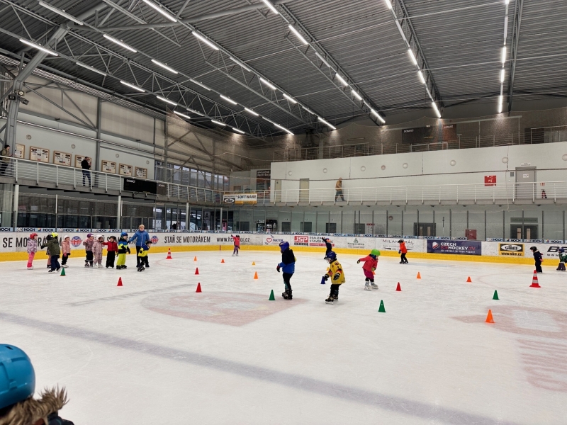 Předškoláci se učili bruslit na zimním stadionu v Českých Budějovicích.