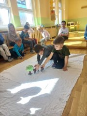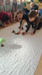 Vzdělávací program s paní Vackovou o stopách zvířat provázaný příběhem a aktivitami.