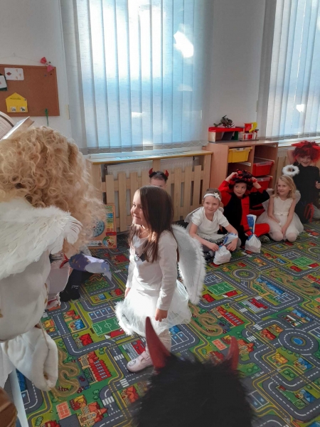 Za dětmi do školky opět zavítal Mikuláš, čert a anděl.