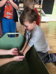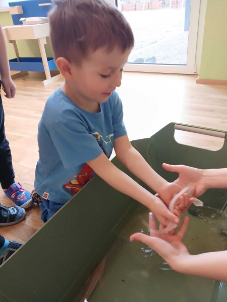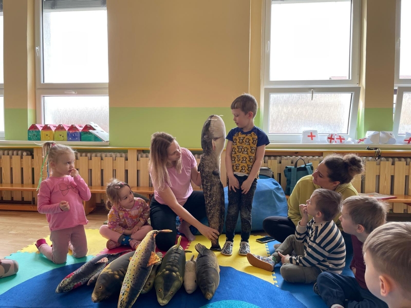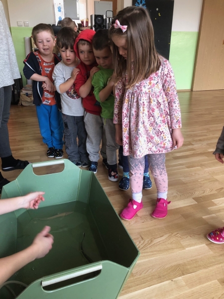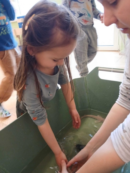 Děti měly možnost se dozvědět zajímavosti ze světa ryb a mohly si pohladit malé živé jesetery.