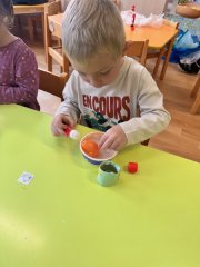 Děti si vyzkoušely velikonoční tradice a vytvořily si vlastní výrobek.