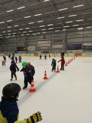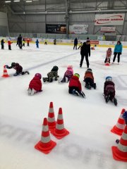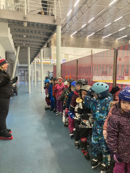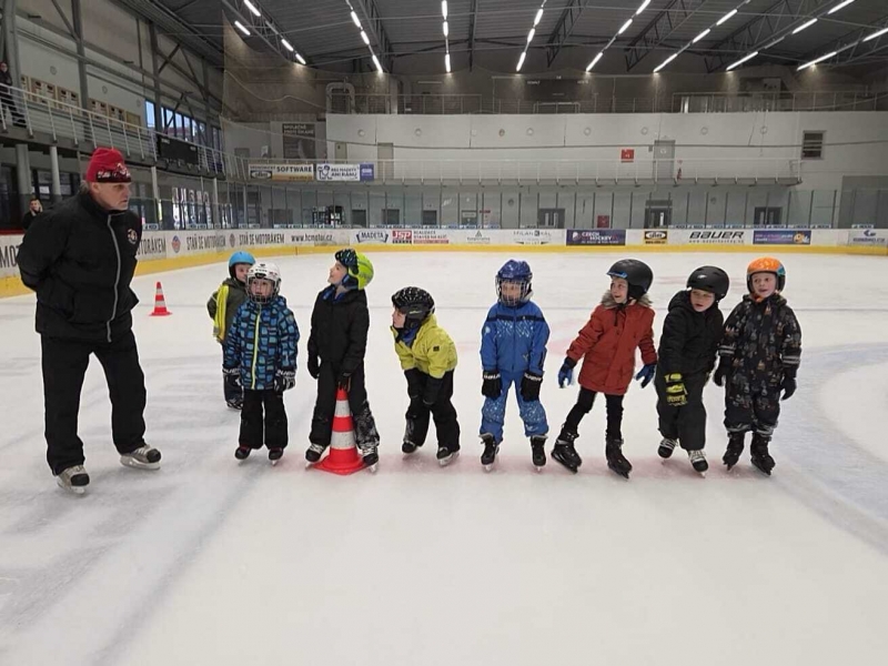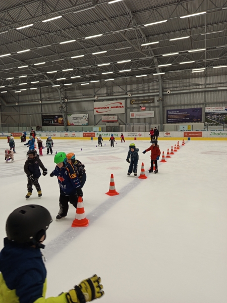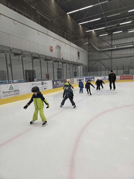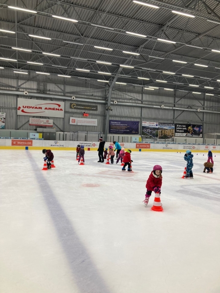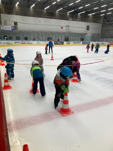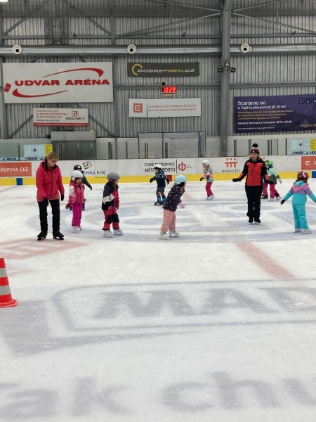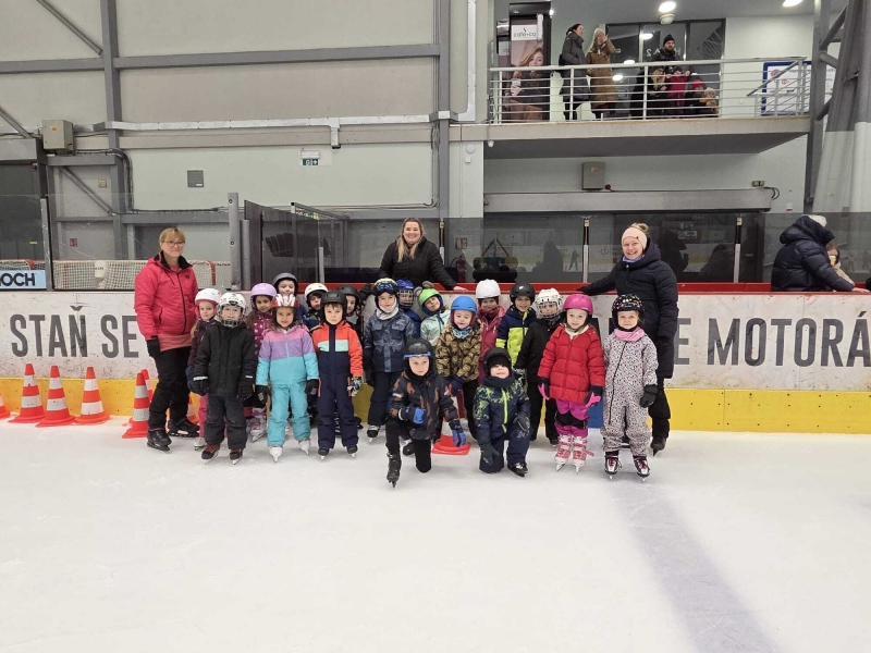 Děti ze tříd Hvězdiček, Motýlků a Včelek se učily jezdit na bruslích.