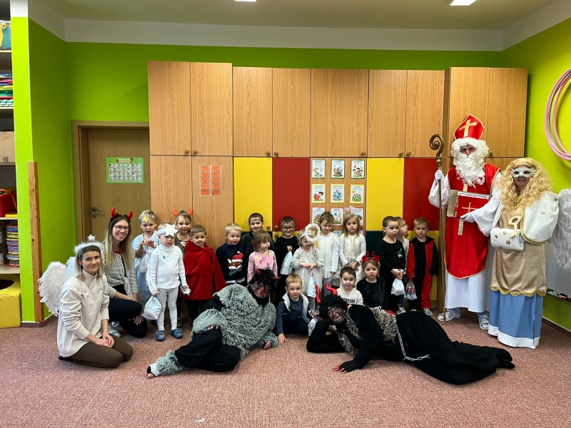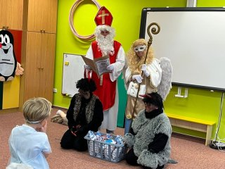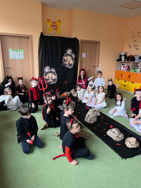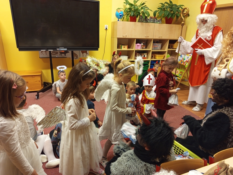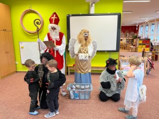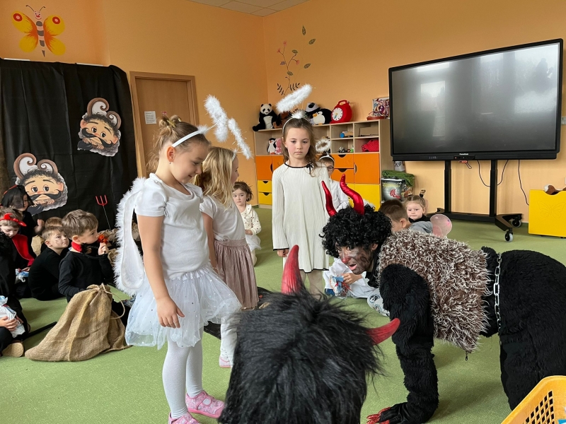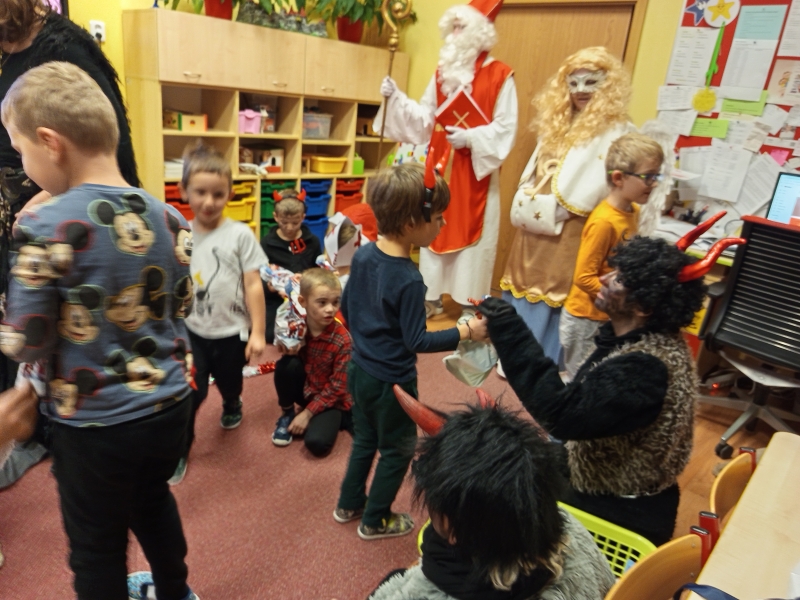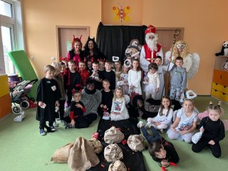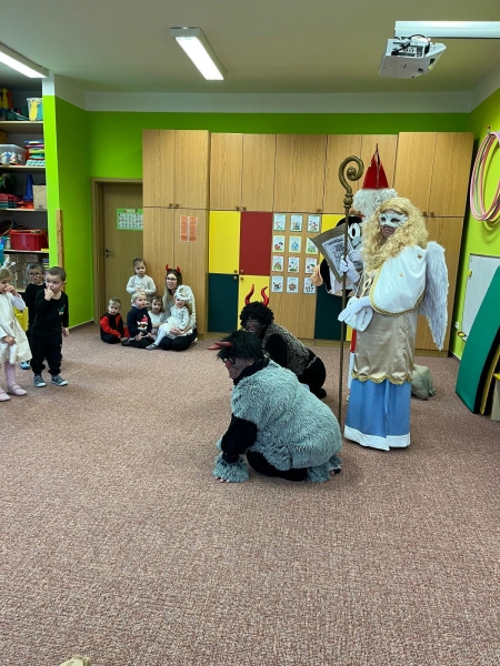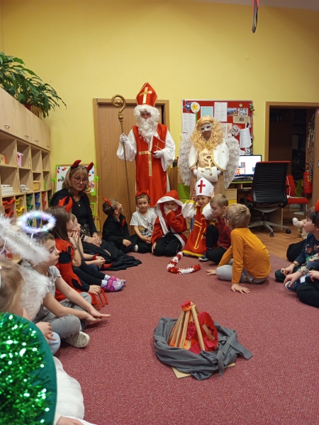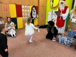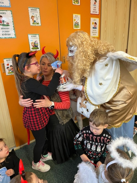 Do školky přišel nadělovat Mikuláš s čertem a andělem.
