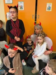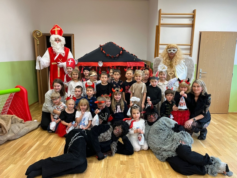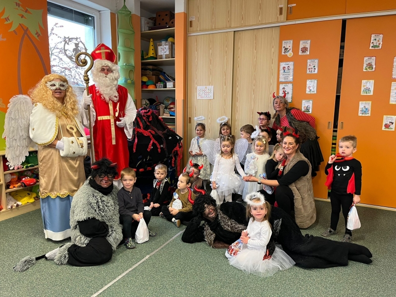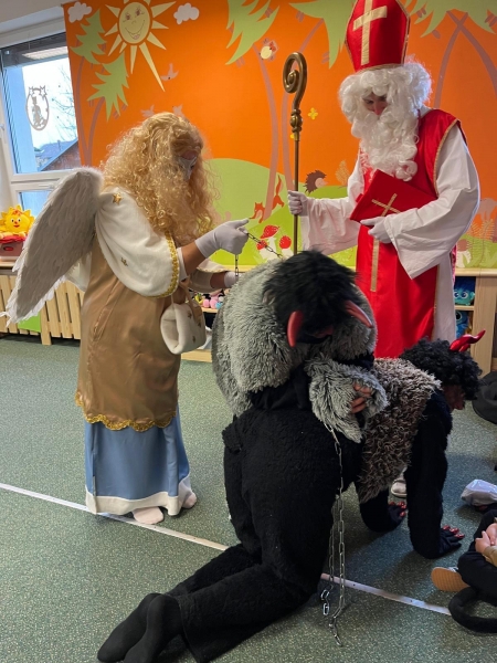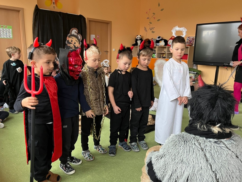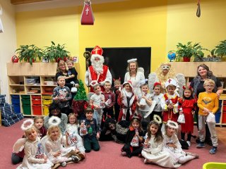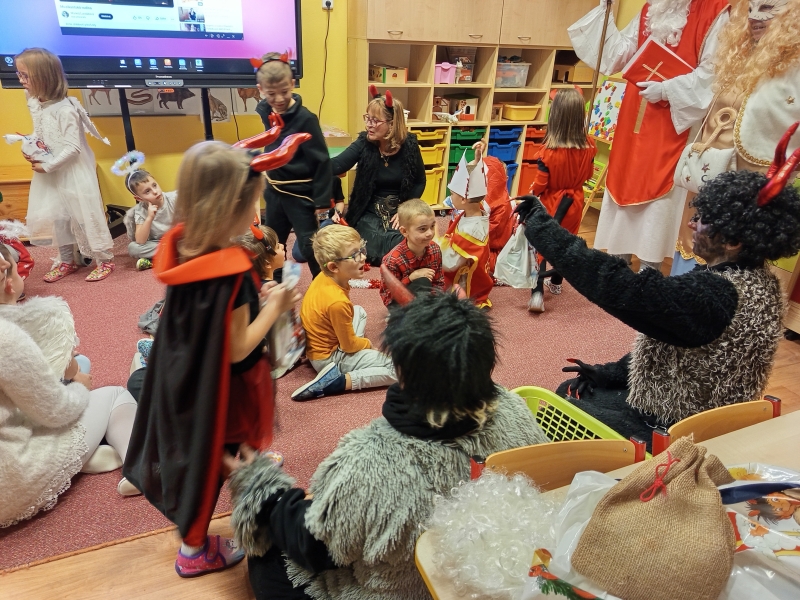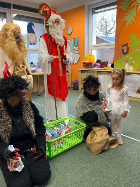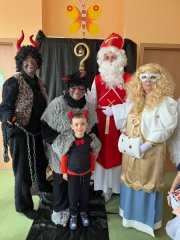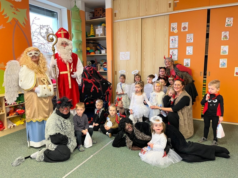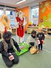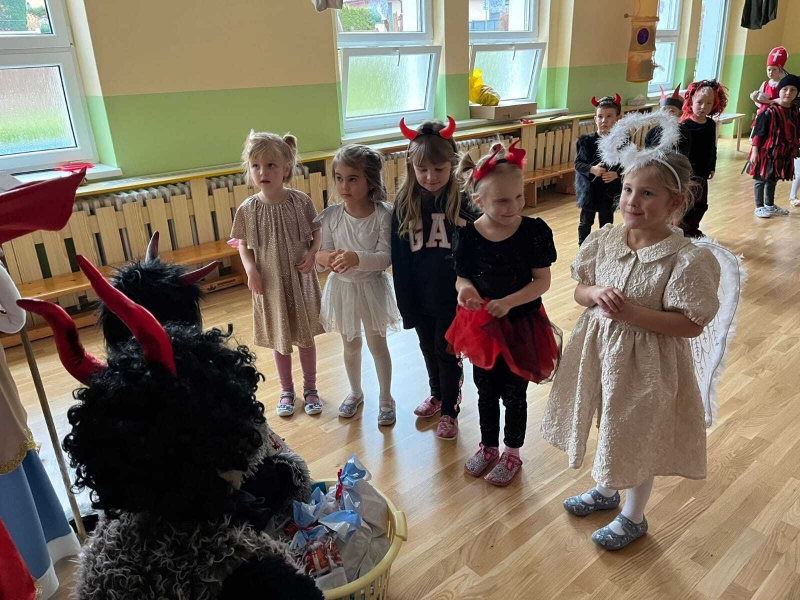 Do školky přišel nadělovat Mikuláš s čertem a andělem.