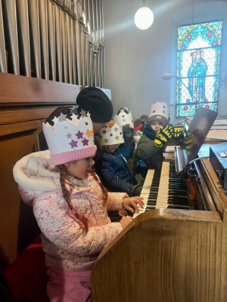 Děti ze školky se vydaly jako Tři králové do knihovny a do kostela.