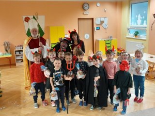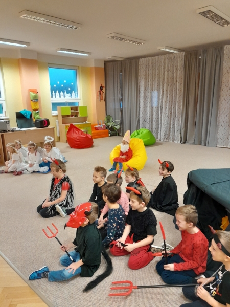 Sv. Mikuláš a čert navštívili děti ve Včelkách.