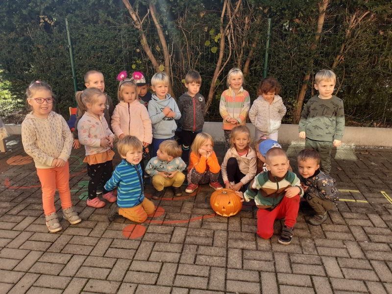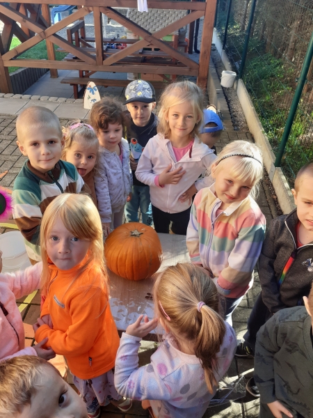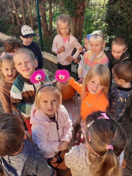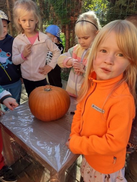Děti ze třídy Vrabčáci při podzimím dýňování.
