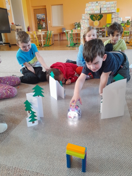 Děti se seznamují s roboty a učí se s nimi pracovat.