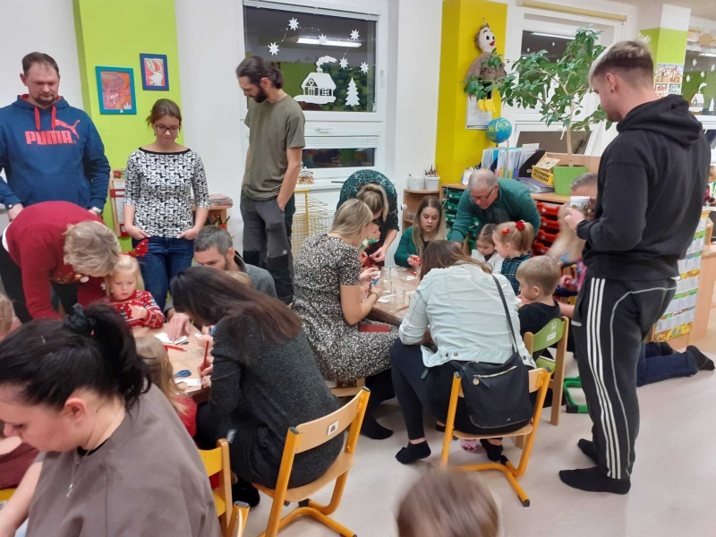 Malé děti ze třídy Vrabčáci si připravily vystoupení pro rodiče a pak následovalo tvoření a občerstvení.