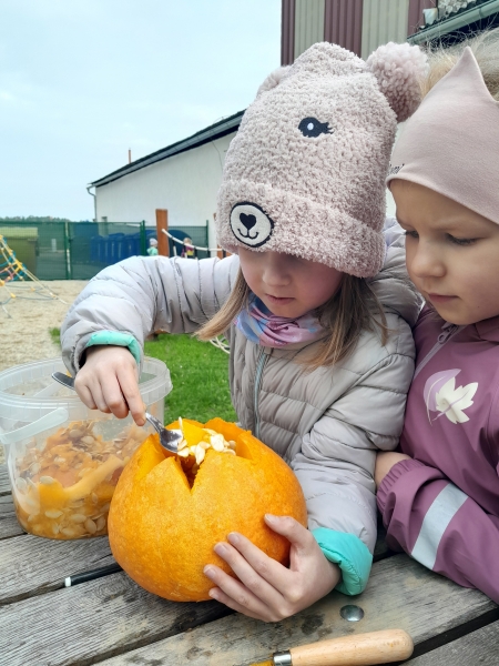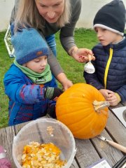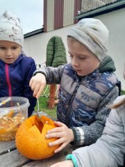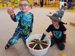 Děti ze třídy Včelky si užily Hallowenna v maskách, dlabaly dýně a soutěžily.