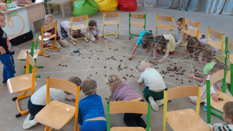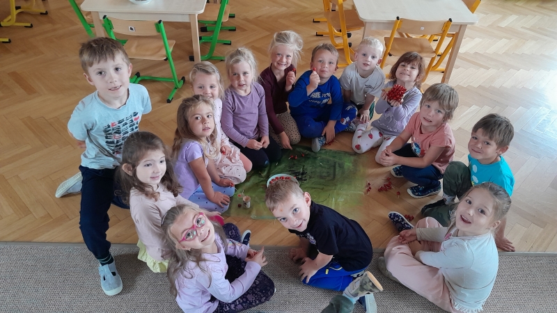 Děti si hrály na pavoučky, sbíraly kaštany a ze šípků a brambory vyrobily ježka.