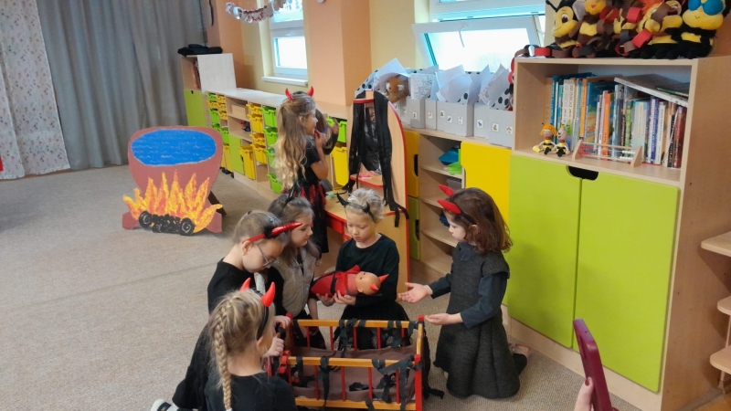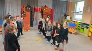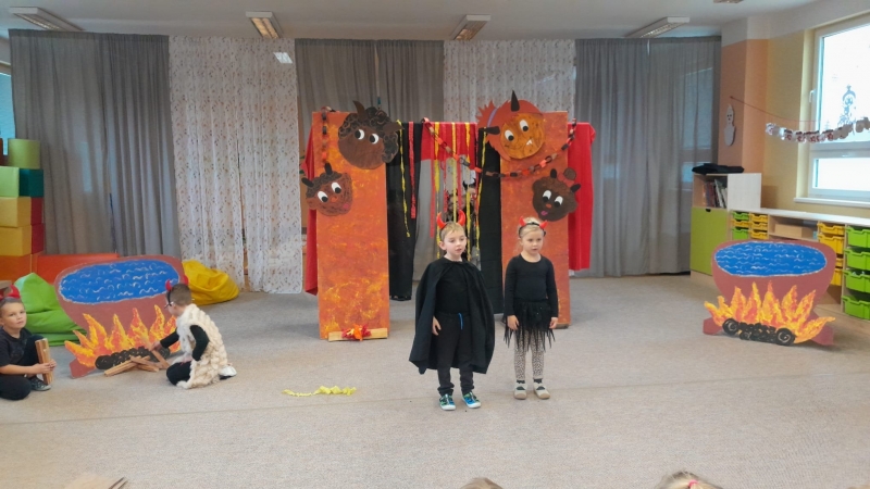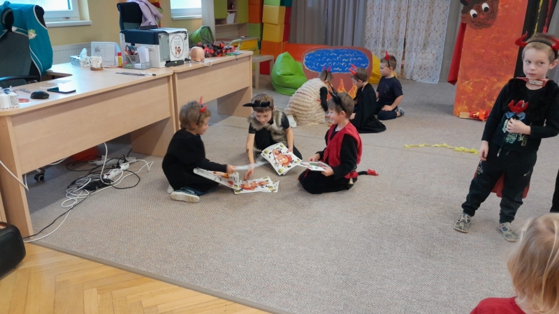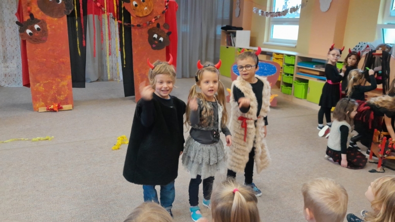 Děti ze Včelek si pro rodiče připravily čertovskou besídku, která se moc líbila. Společně si barvami ozdobily vánoční talířek.