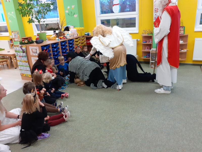 Malé děti si užily návštěvu Mikuláše s čerty a andělem.