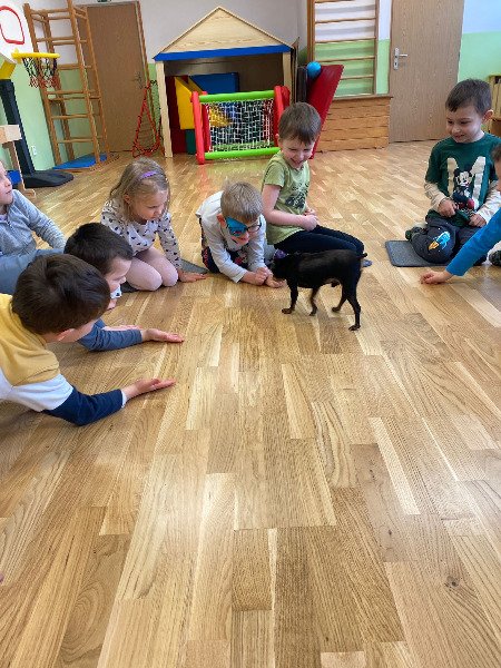 Velkým zážitkem bylo, že si děti mohly pejska pohladit a také mu dát granulku. Setkání proběhlo v klidné a přátelské atmosféře a děti si ho velmi užily.