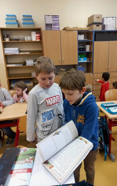 Paní učitelky spolu se žáky prvních tříd děti srdečně přivítaly, ukázaly jim, co se ve škole učí, a provedly je po školní budově. Děti měly možnost nahlédnout do tříd i dalších prostor školy.